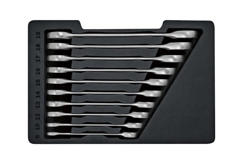 Kot nalašč za ozke prostore – zelo vsestranski 10-delni komplet ključev z ragljo.