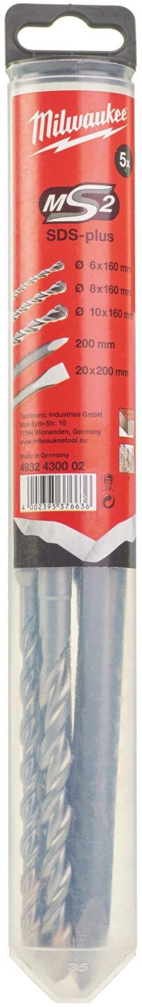 - Set vsebuje tri svedre SDS-Plus premera 6, 8 in 10 mm ter koničasto in ploščato dleto, kar omogoča vsestransko uporabo za različna gradbena in prenovitvena dela.