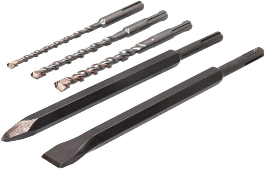 - Vsebuje: 1 sveder za kladivo Ø 6×160 mm, 8×160 mm, 10×160 mm, 1 špica 250 mm in 1 plosko dleto 250×20 mm