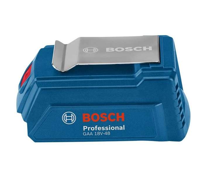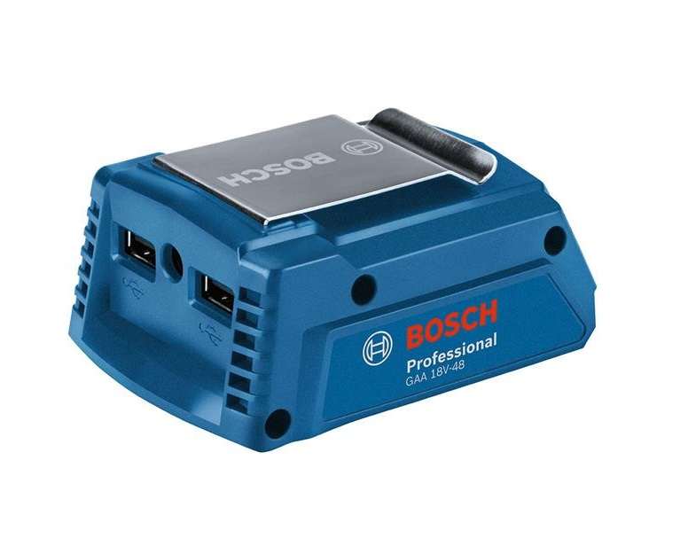 - Bosch GAA 18V-48 Professional spremeni Boscheve 18V baterije v zmogljive napajalnike USB z 2x 2.4 A polnilnim tokom.