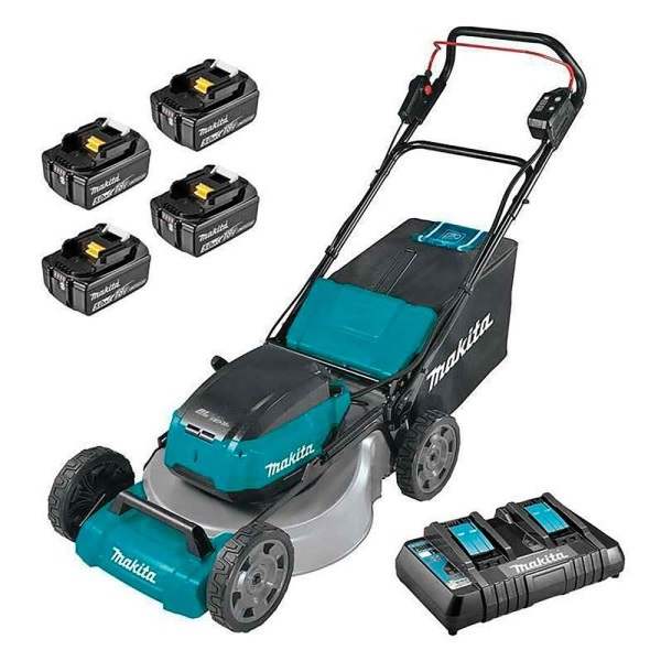 - Kosilnica DLM530PT4 ima priloženeno opremo: 4x 5.0 Ah Li-Ion akumulator, hitri dvojni polnilnik.