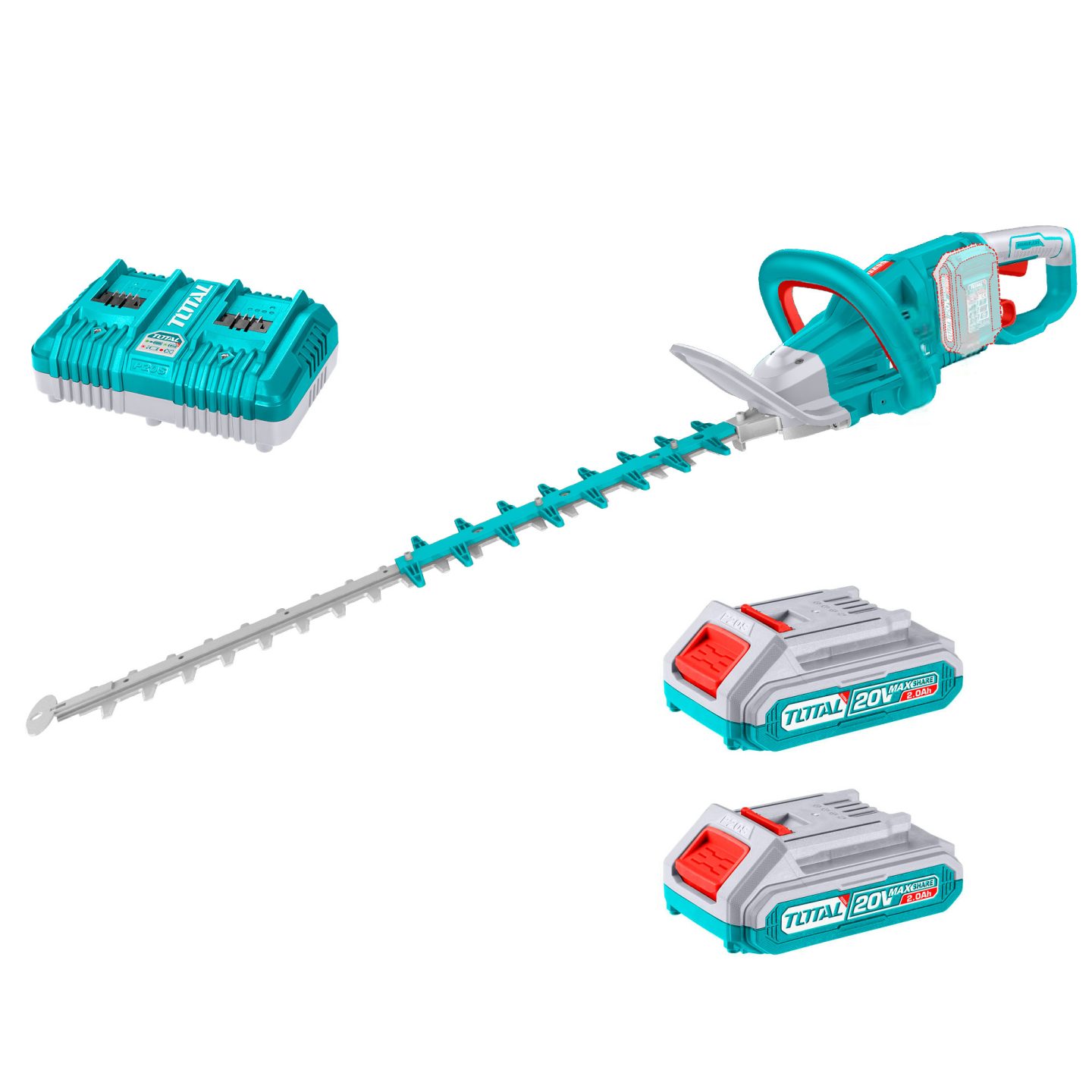 Akumulatorske škarje za živo mejo 3600spm /650mm /P20S (SET Baterija 2x2Ah, 2xPolnilec) (THTLI400282) Total Tools