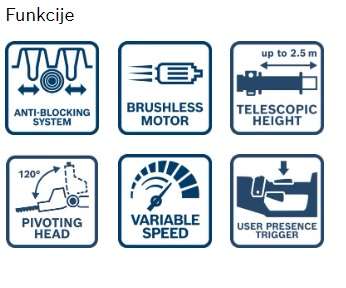 - Omogoča rezanje skozi srednje goste žive meje, Boschev protiblokirni sistem pa preprečuje zagozditev škarij.