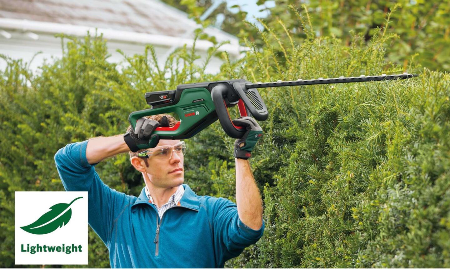 Zmogljive in lahke 18-V škarje za živo mejo za popolne rezultate pri srednje velikih živih mejah.