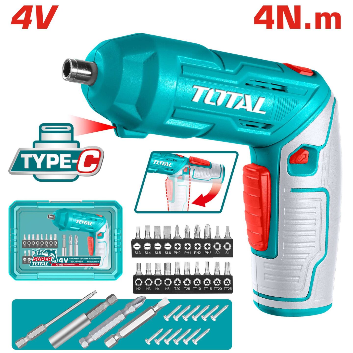 Akumulatorski izvijač 4V/1,5Ah/4Nm/Type-C/2pos (TSDLI04425) Total Tools