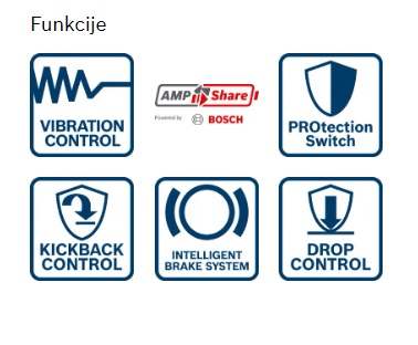 - PROtection switch (varnostno stikalo) ob izpustu orodja nemudoma izklopi brusilnik, s čimer poskrbi za še večjo varnost uporabnika.