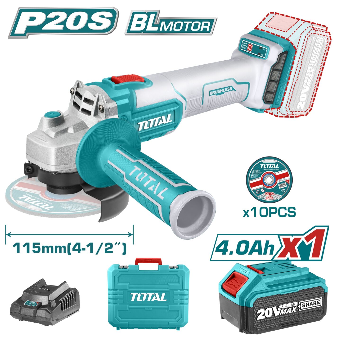 TOTAL TAGLI2011587 – akumulatorska kotna brusilka z baterijo 20 V / 4 Ah.