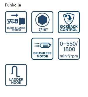 - Najboljše funkcije za upravljanje orodja: napredna tehnologija KickBack Control zmanjšuje nevarnost rotacijskega povratnega udarca
