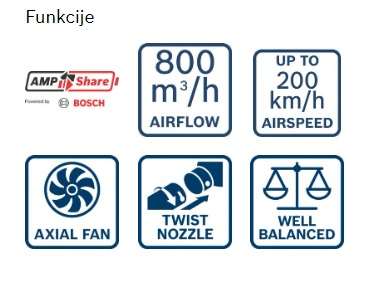 Akumulatorski puhalnik Bosch GBL 18V-800 06008D2200