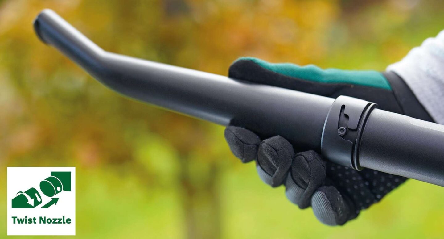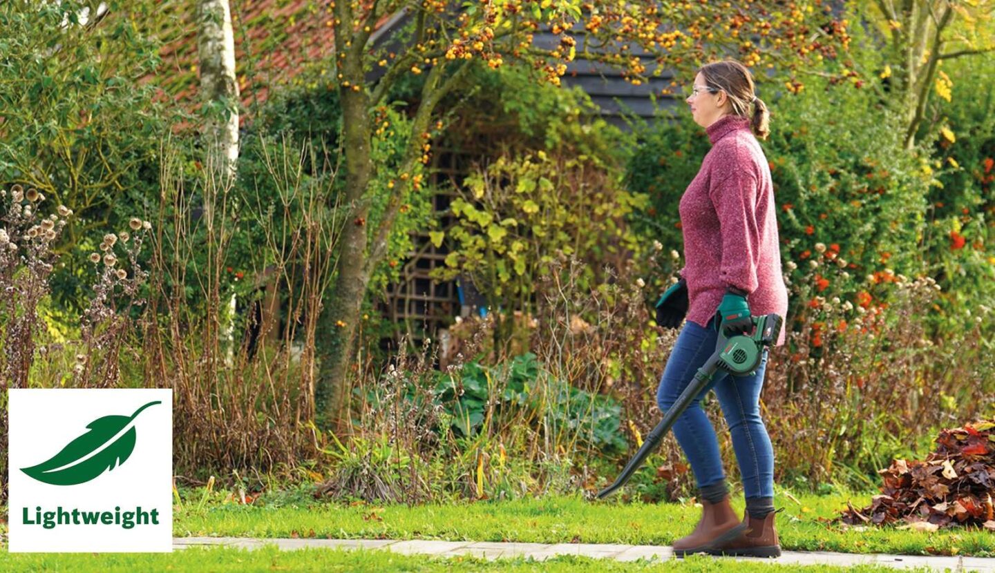Lahek akumulatorski puhalnik listja za hitro in preprosto čiščenje zunanjih površin.