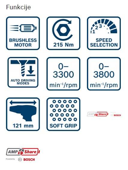 - To hitro in učinkovito orodje je primerno tudi za dolge vijake in trš les, saj deluje s številom vrtljajev kar 3300 min–1 ter vrtilnim momentom kar 215 Nm.