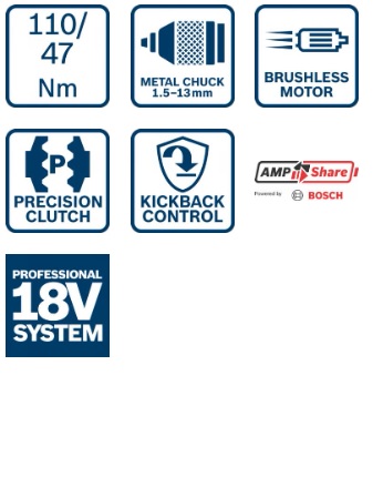 • Zmogljivost: 110 Nm maks. vrtilnega momenta in brezkrtačni motor za hitro opravljanje dela