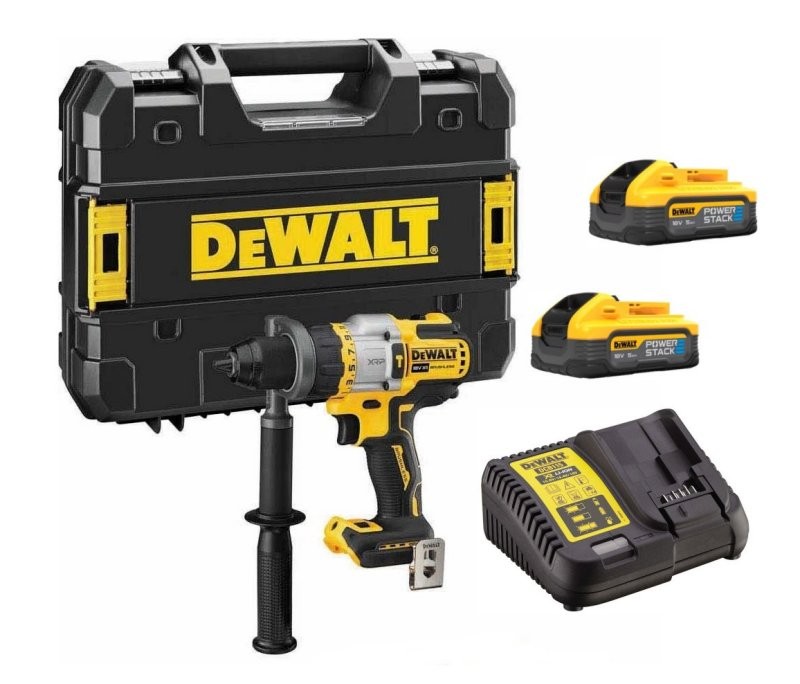 - Oprema Dewalt DCD999HT2 vsebuje 2x 5.0 Ah Powerstack akumulator DCBP518 in hitri polnilnik za akumulatorje DCB1104.