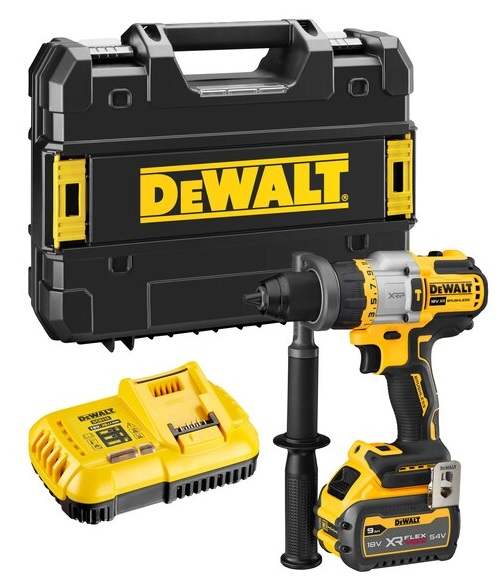 - Oprema Dewalt DCD999X1 vsebuje 1x 9.0 Ah Flexvolt akumulator DCB547 in hitri polnilnik za akumulatorje Flexvolt DCB118.