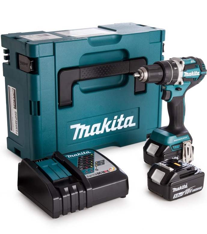 - Profesionalen vrtalnik DHP484 z vgrajeno dvojno LED delovna lučko s funkcijo zakasnitve – verjetno najboljša izbira med Makita 18 V vrtalniki – razmerje med ceno in kakovostjo.