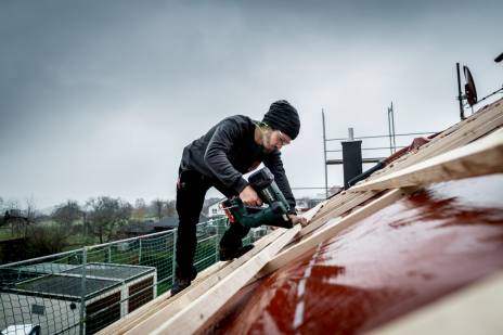 - Močan baterijski žebljičar s pnevmatsko udarno tehniko za iglice, dolžine do 90 m