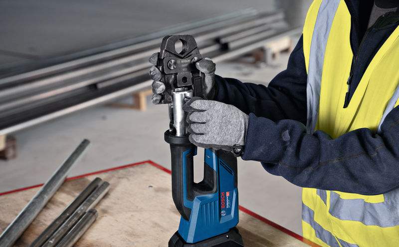 Akumulatorsko stiskalno orodje GPT 18V-19 brez težav obdela cevi različnih premerov.
