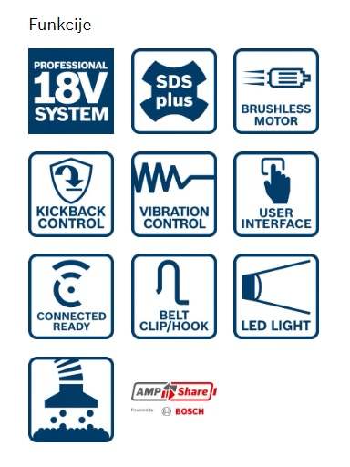 - Brezkrtačni motor in udarni mehanizem omogočata energijo udarca v višini 3,4 J za zavidanja vredne rezultate.