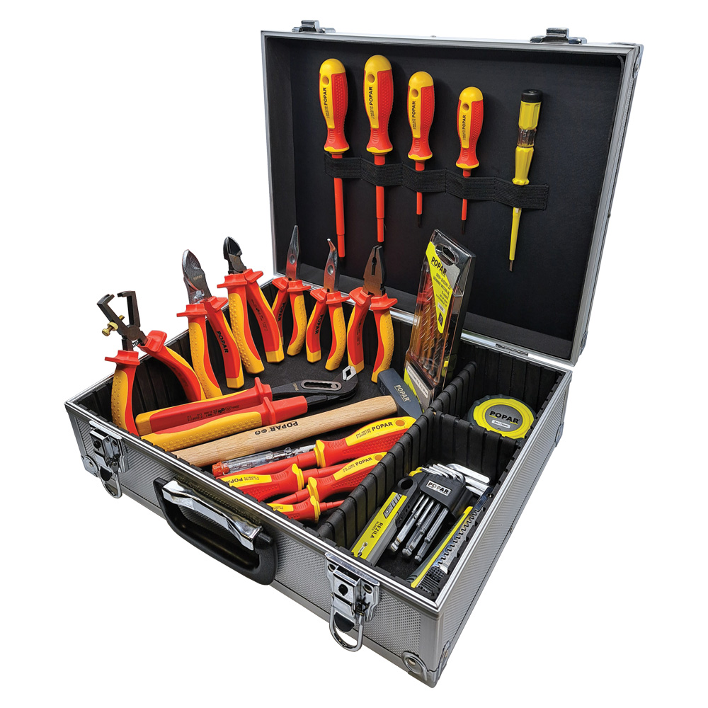 - Aluminijast kovček z orodjem POPAR VDE predstavlja izjemen set s 35 različnimi kosi orodja, namenjenim širokemu spektru uporabnikov – od izkušenih mojstrov do začetnikov in hišnih mojstrov.