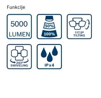 - PRO GLT18V-5000 osvetljuje srednje velika do velika delovna območja, ter ima stopnjo zaščite IP54.