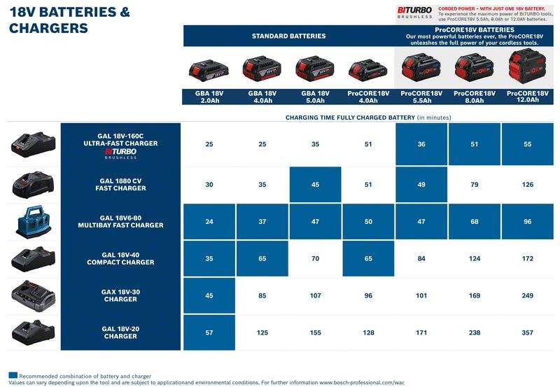 - Optimizirana hitrost polnjenja: optimizirana hitrost polnjenja za kompaktne 18-voltne akumulatorske baterije – akumulatorska baterija 18 V 2,0 Ah se do 80 % napolni v 36 minutah