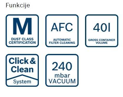 • Konstantno visoka sesalna moč ter Boscheva ekskluzivna tehnologija samodejnega čiščenja filtra izboljšata storilnost in zmanjšata nivo hrupa.