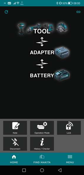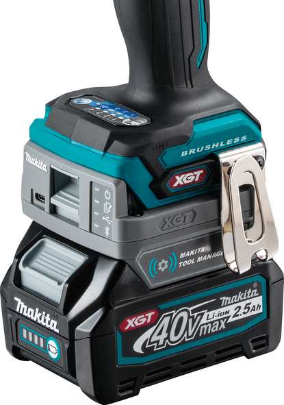 - Adapter omogoča spremljanje delovanja akumulatorja, posodabljanje programske opreme in komunikacijo z Makita aplikacijo, kar pripomore k boljšemu nadzoru in optimizaciji delovanja orodij XGT.