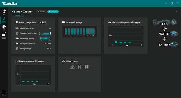 - Funkcije: komunikacija med orodjem in akumulatorjem, posodobitve programske opreme, prenos podatkov