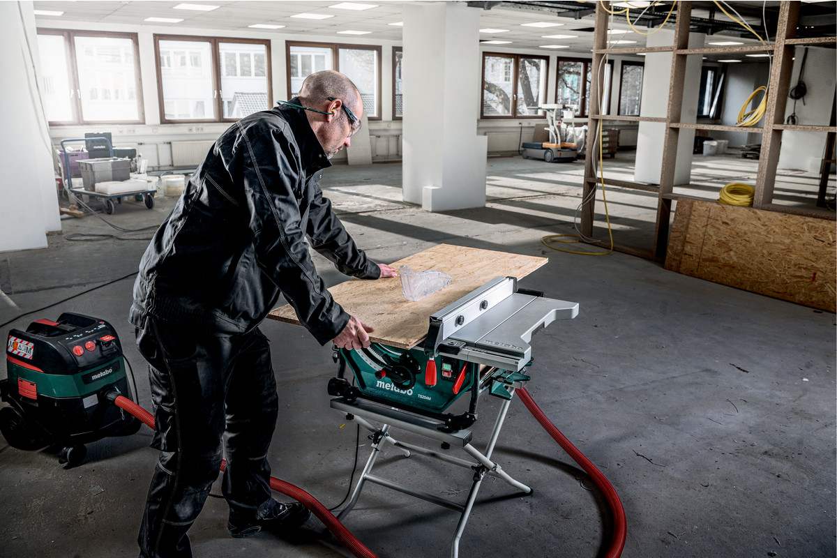 - Kompaktna mobilna namizna žaga Metabo TS 254 M z dobrimi rezalnimi zmogljivostmi in visokim delovnim udobjem.