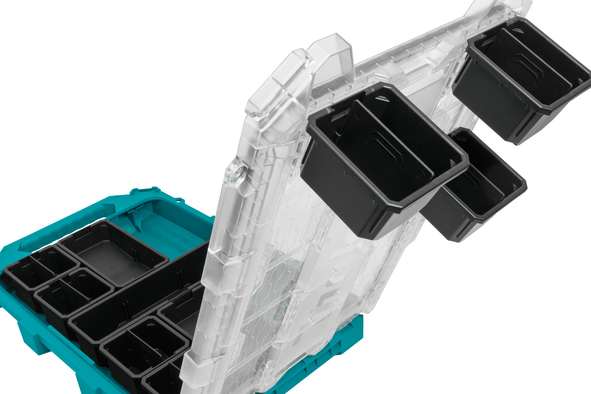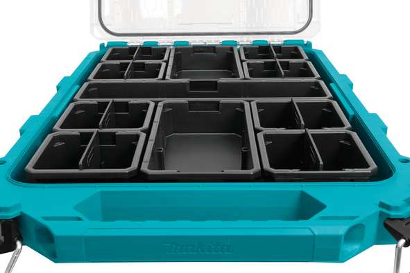 - Nizek srednji organizator Makita P-91051 je zasnovan za učinkovito shranjevanje manjših delov, pribora in orodja.