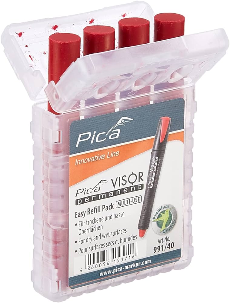 - V škatlici so 4 rdeče voščenke za svinčnik Pica 990.