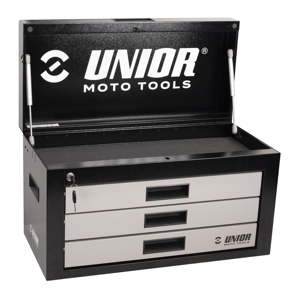 Za vse moto navdušence, ki stremite k urejenemu delovnemu okolju in svoje jeklene konjičke radi popravljate kar sami doma, je prenosni predalnik za orodje prava izbira za vas. Ne glede na to, ali se nahajate na terenu, ob dirkalni stezi ali doma, vaši seti orodja bodo zmeraj lično zloženi in razporejeni. Vse z namenom celovito urejenega delovnega okolja. Predalnik je narejen iz Premium Plus pločevine. Ima centralno zaklepanje predalov in pokrova, kroglična vodila predalov z mehkim zapiranjem, 100% izvlek predalov za večjo preglednost in dostopnost do orodja. Ima 3 predale (D563 × Š270 × G75 mm) in odlagalni prostor pod pokrovom velikosti 560 x 267mm.