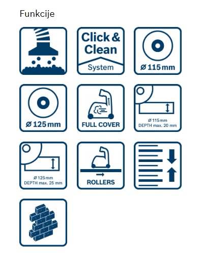 | Največja rezalna globina | 20 mm (Ø 115 mm) / 25 mm (Ø 125 mm) |