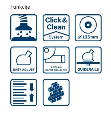 - Deluje z mnogimi Boschevimi kotnimi brusilniki premera 125 mm.