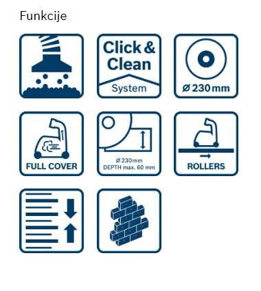 - Deluje z mnogimi Boschevimi kotnimi brusilniki premera 230 mm.