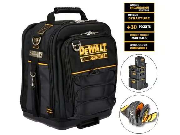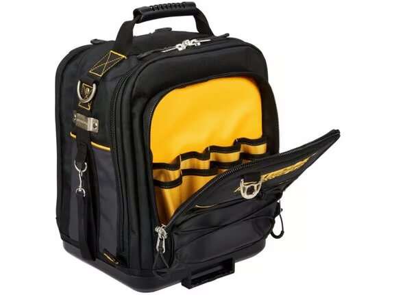 Torba omogoča 360-stopinjski dostop do orodja z več kot 25 žepi različnih velikosti, vključno s posebnimi predali za električno orodje, baterije in dodatke. Velik globok žep zagotavlja dodatno zaščito, medtem ko stranski žep s trakom omogoča shranjevanje daljšega orodja ali steklenice. Vodoodporna plastična podlaga dodatno ščiti vsebino pred vlago in umazanijo.