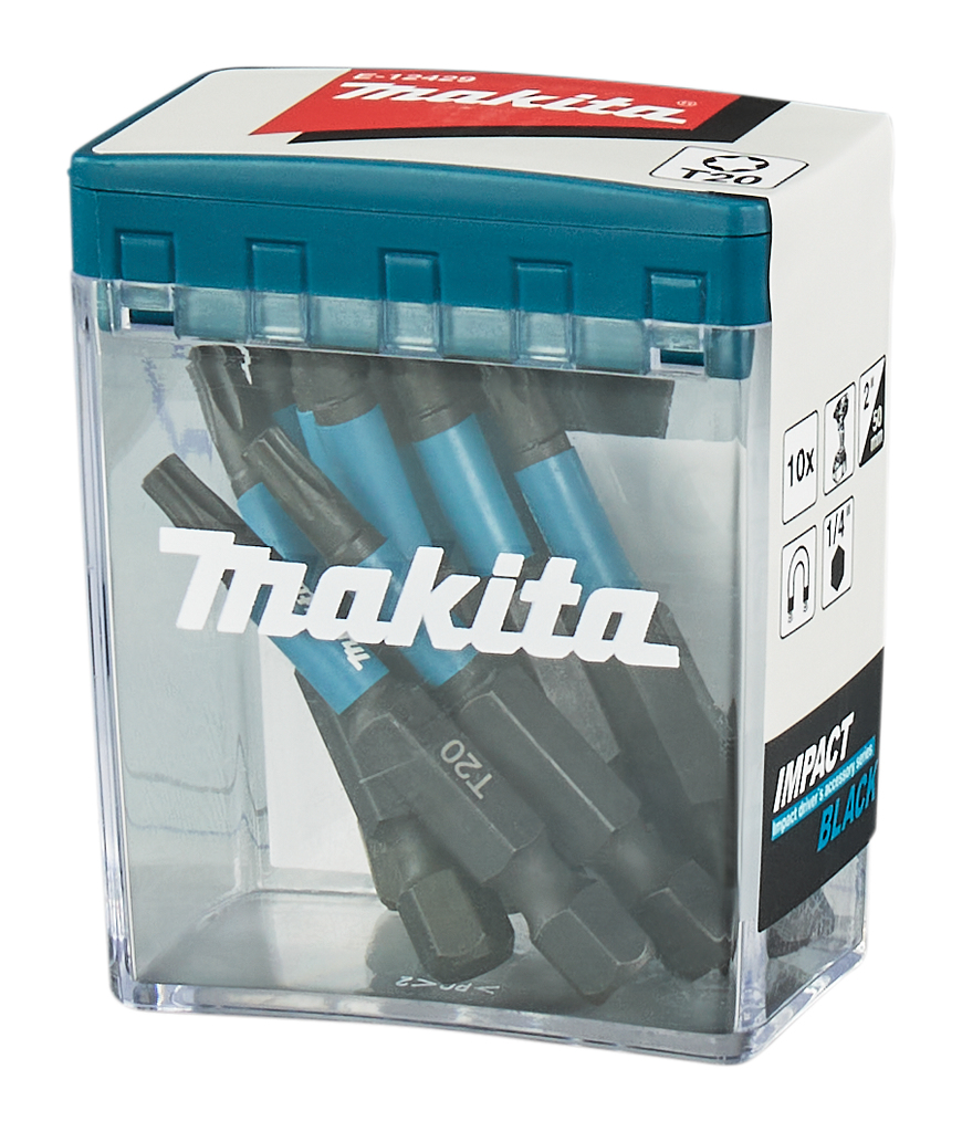 - Makita E-12429 je komplet torzijskih magnetnih vijačnih nastavkov T20 dolžine 50 mm, zasnovan za profesionalno uporabo z akumulatorskimi in udarnimi vijačniki.