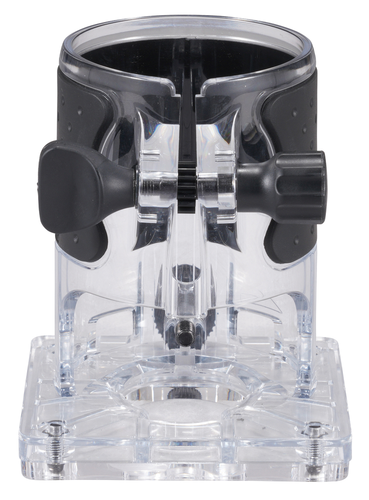 - Njegova prozorna zasnova omogoča odlično preglednost nad delovno površino in večjo natančnost pri rezkanju.