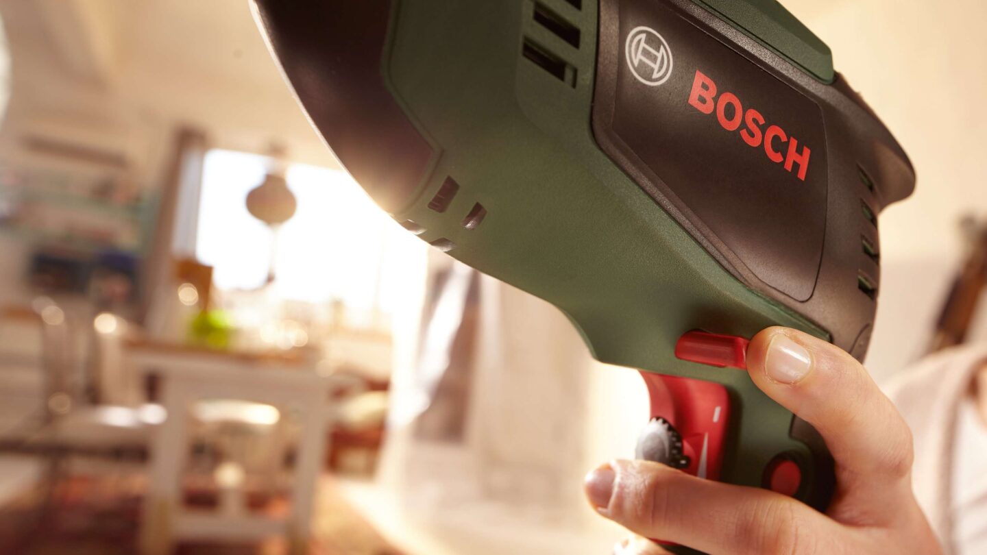 - Boschev sistem elektronske predizbire hitrosti za prednastavitev in natančno krmiljenje hitrosti vrtanja.