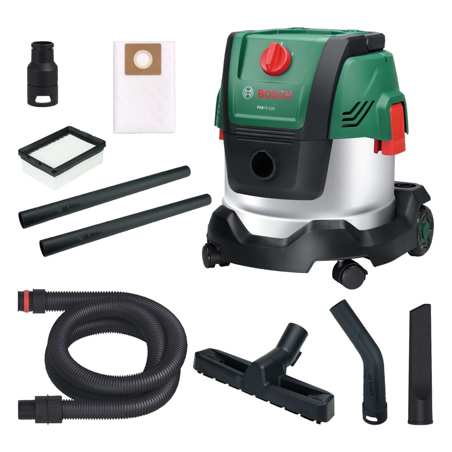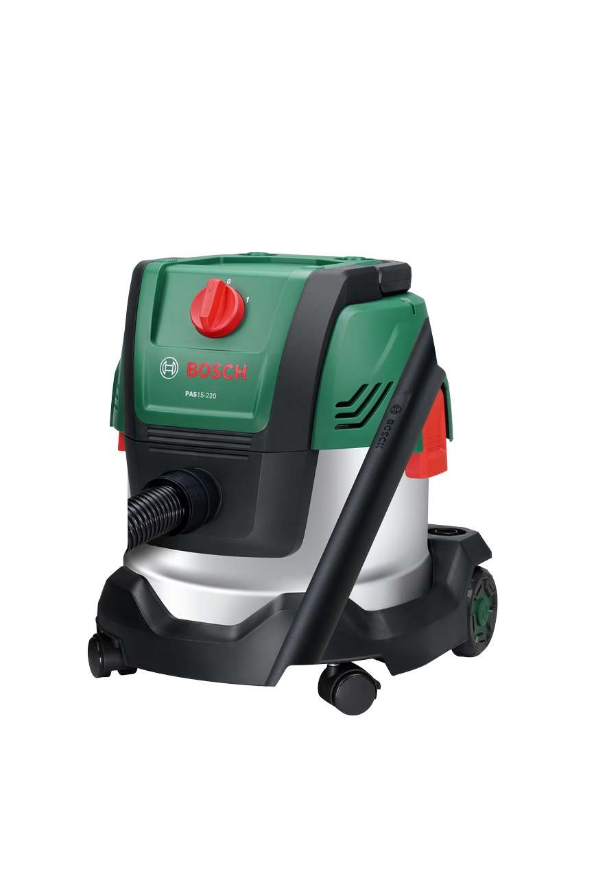 - Večnamenski sesalnik Bosch PAS15-220 vsebuje 1.200-W motor z močjo sesanja 220 mbar, ki enostavno odstrani mokro in suho umazanijo.