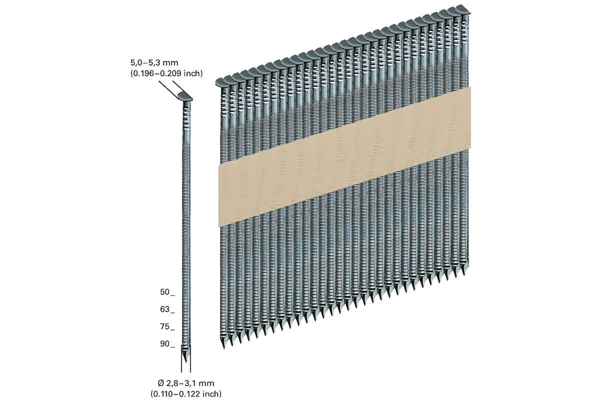 Metabo Žeblji na traku 34°, 2.8 x 75 mm, obroč, vezani na papirju – 4000 kosov (630154000)