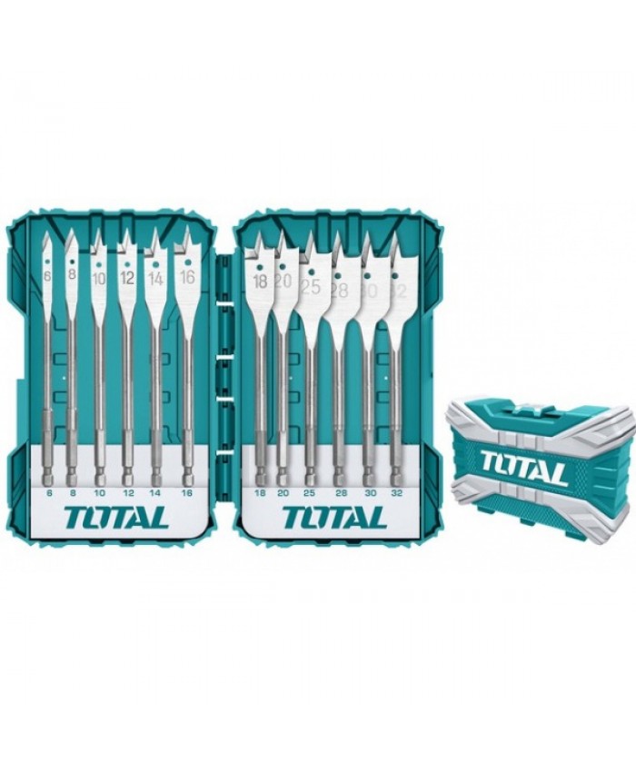 Nabor ploščatih svedrov TOTAL TACSDL1201 sestoji iz 12 kosov. Namenjeni so vrtanju lukenj v mehkih in trdih vrstah lesa ter mavčni plošči.