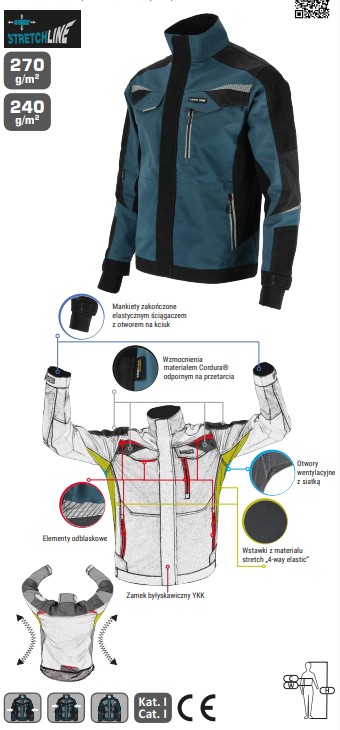 ✔ Dodatna zaščita – okrepljeni rokavi, ramenski del in žepi iz Cordura® (420D najlon) za večjo odpornost proti obrabi