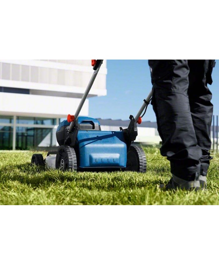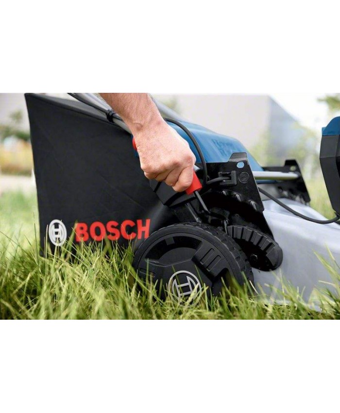 - Kosilnica ima premer košnje 46 cm in omogoča 6-stopenjsko nastavitev višine košnje med 30 in 70 mm.