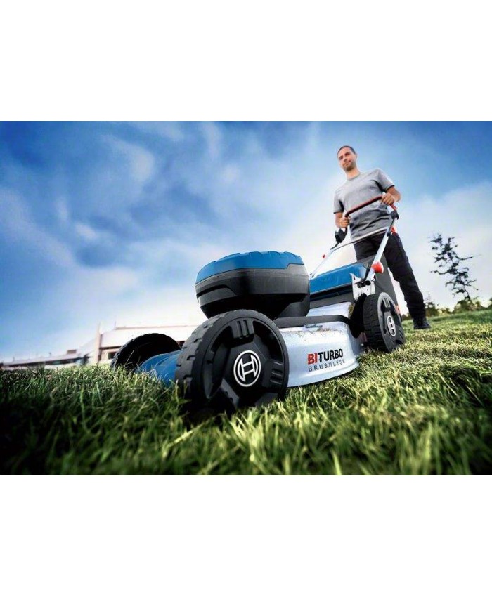 Zmogljiva akumulatorska kosilnica z brezkrtačnim motorjem za priročno delo brez napora.