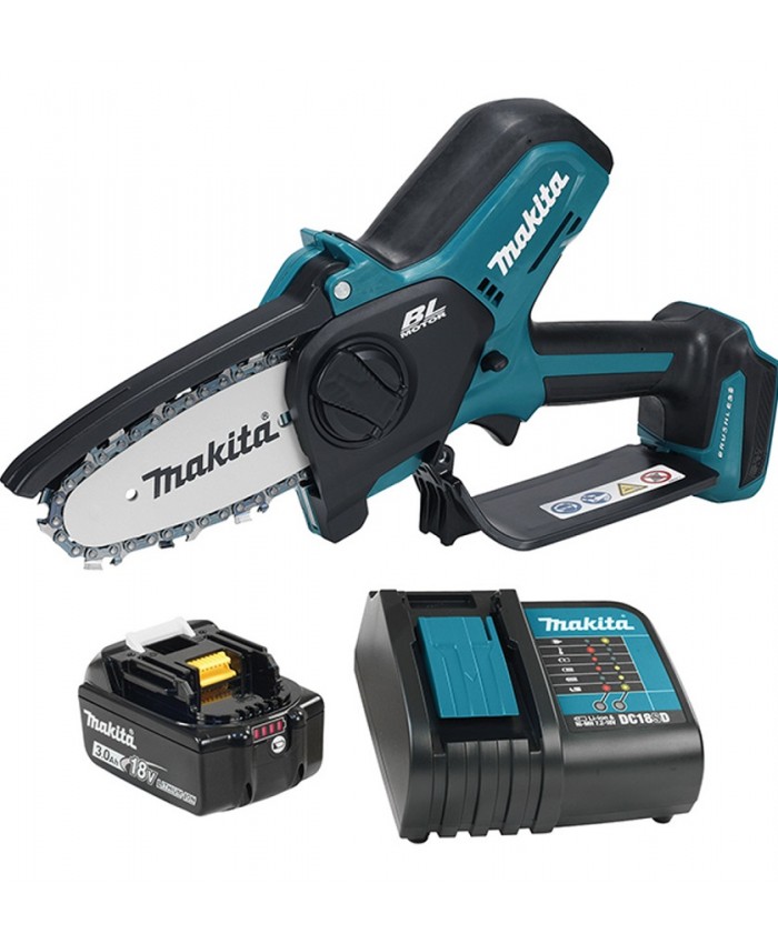 - Ob akumulatorski obrezovalni žagi DUC101SF pride še: 1x akumulator 3.0 Ah Li-Ion, polnilnik DC18SD; veriga žage (montirana), meč za žago(montiran), Olje za verigo žage 100 ml, ščitnik verige žage(montiran), držalo za pilo z okroglo pilo.