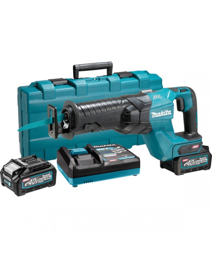 - Priložena oprema ob žagi JR001GM201: 2x 40 V 4.0 Ah Li-Ion (kapaciteta enaka 18 V 9.0 Ah), hitri XGT polnilnik, kovček za prenos orodja.