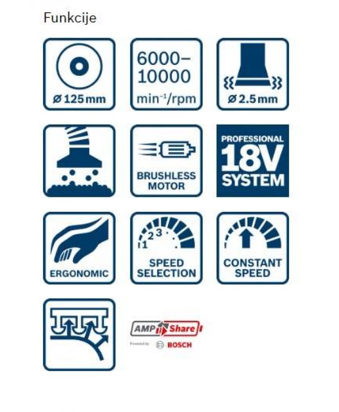 - Brezkrtačni motor in Boschev profesionalni 18V akumulatorski sistem zagotavljata dolgo življenjsko dobo in hiter napredek pri delu.