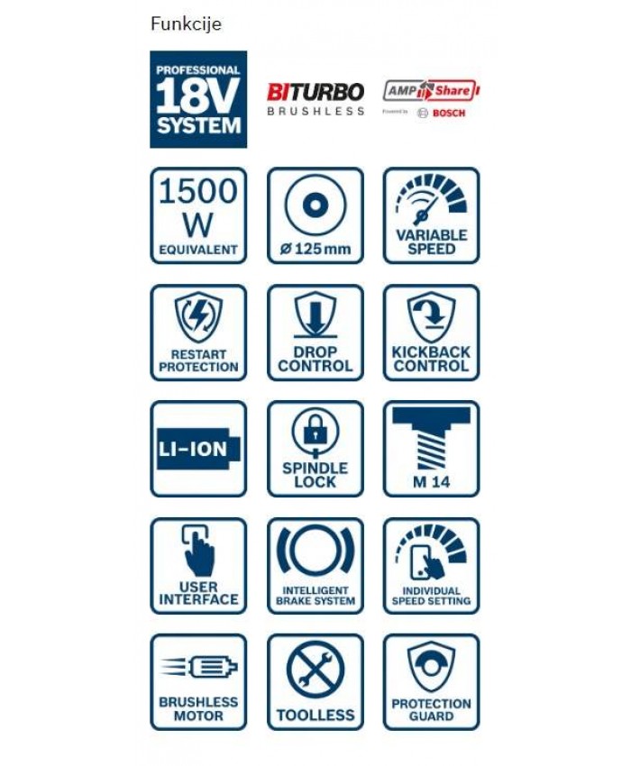 Razdelitev kategorij izdelkov | Akumulatorski kotni brusilnik BITURBO |