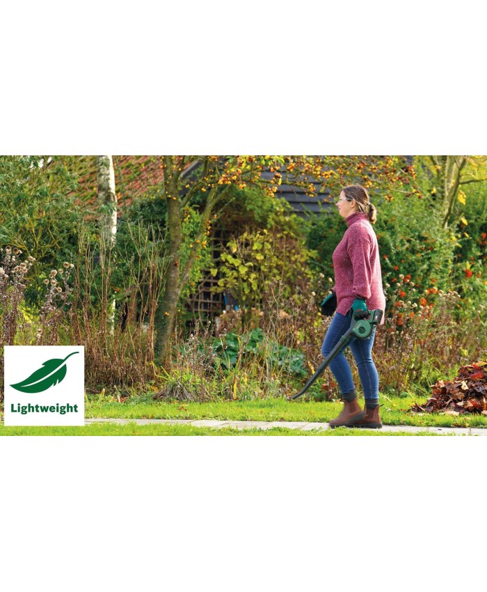 Lahek akumulatorski puhalnik listja za hitro in preprosto čiščenje zunanjih površin.